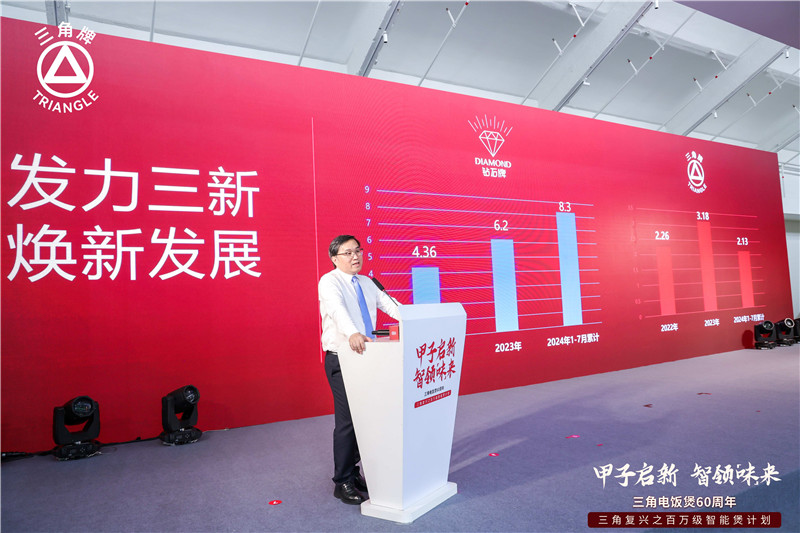 2024年8月28日,廣東三角牌電器股份有限公司于廣州T.I.T智慧園隆重舉辦三角牌電飯煲60周年之‘百萬級智能煲新品’發布會。發布會現場各界專家媒體嘉賓云集,來自全國各地的工廠、商家客戶齊聚一堂,共商三角未來復興大計。